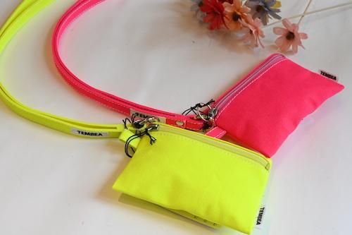 同じカラーで発売のフラットポーチスモールサイズを繋げれば小さなポシェットとしていつでも身につけておけます