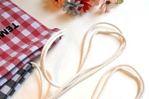 ニードルパンチ加工を施したギンガム素材を使ったマチのないポーチ